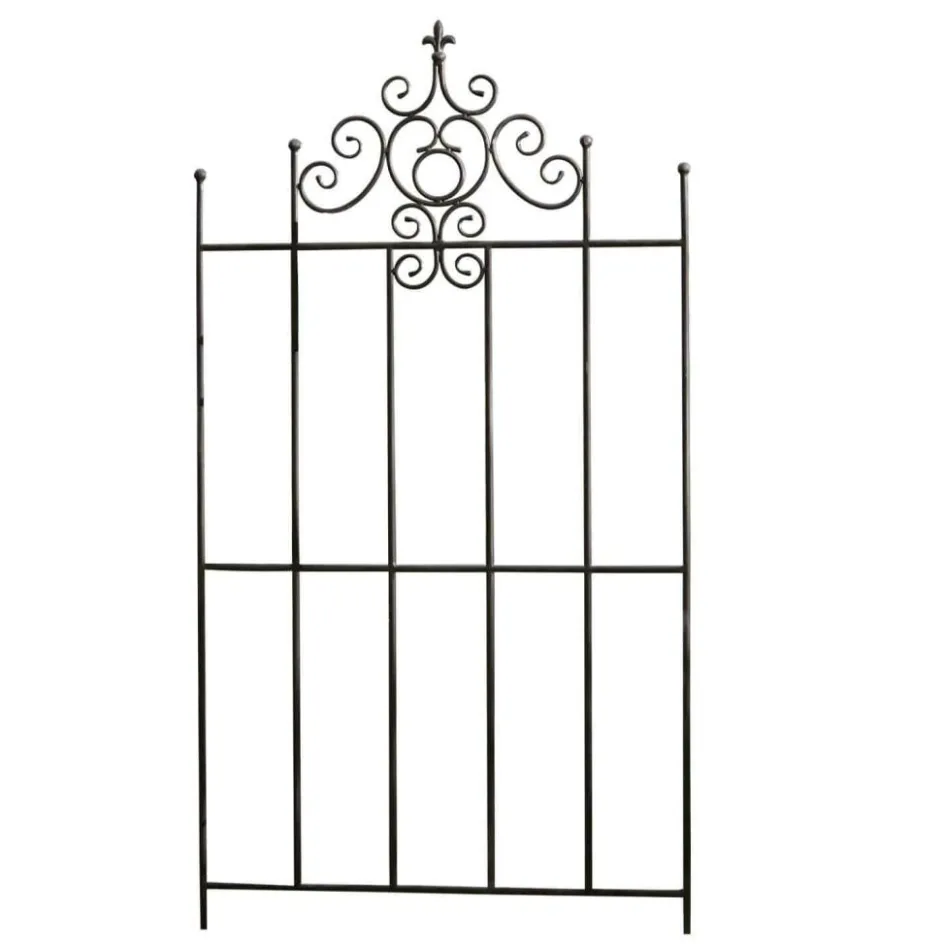 Durch die stattliche Größe schafft das Gitter eigene Räume im Garten und kann auch als Sichtschutz zum Nachbarn eingesetzt werden. Sehr dekorativ auch an der Hauswand als Rankhilfe für Kletterpflanzen oder als eigenständiges Deko-Element. Mit kunstvollem Ornament aus Eisen gefertigt. Bei kräftigen Pflanzen eventuell noch zusätzlich an der Hauswand befestigen.