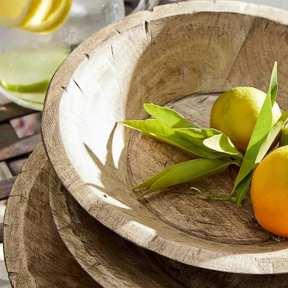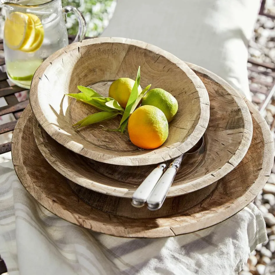 Ein schönes Set wunderbarer Schalen: Dieses attraktive Trio ist aus Mangoholz mit natürlichen Maserungen, die jede Schale zu einem Unikat und exquisiten Schmuckstück machen. Das Mangoholz ist nicht nur ein außergewöhnlich widerstandsfähiges und wetterbeständiges Material, sondern auch sehr nachhaltig und für Lebensmittel geeignet. Definitiv eine Zierde, die Ihre Wirkung in Ihrem Zuhause nicht verfehlen wird! Im Alltag ebenso wie zu besonderen Anlässen.