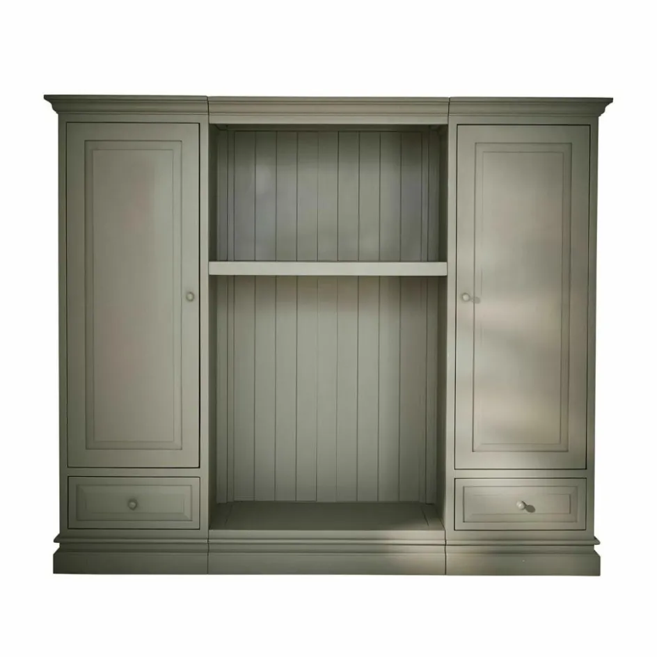 Ein Möbelstück, das Herz und Ordnungssinn gleichermaßen anspricht: Dieser Schrank wurde für Hundeliebhaber entworfen, die Ästhetik und Alltag clever verbinden möchten. In der Mitte verbirgt sich eine kleine Wohlfühloase – ein Liegeplatz mit Kissen, der Ihrem Vierbeiner Geborgenheit schenkt und perfekt in den Wohnraum integriert ist. Die seitlichen Türen offenbaren durchdachten Stauraum: links mit Regalböden für Leckerlis, Spielzeug oder Pflegeartikel, rechts mit einer zierlichen Kleiderstange – ideal für Leinen, Halstücher oder Regenmantel. Die klassische Form und die gerahmten Fronten verleihen dem Schrank eine zeitlose Ausstrahlung, die sich harmonisch in jede Einrichtung einfügt.