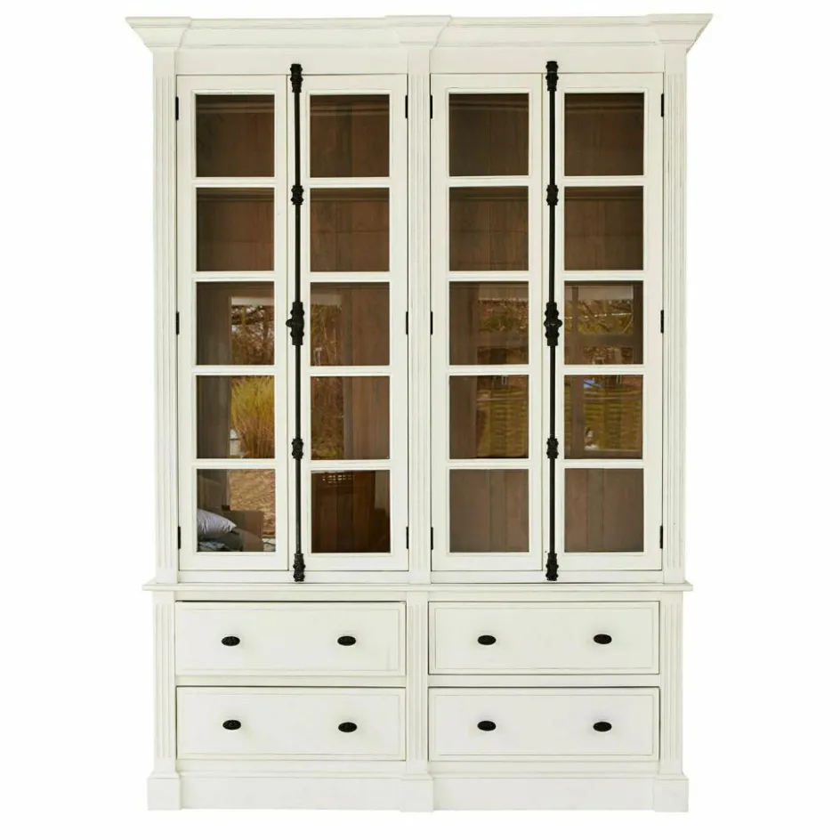 Ein besonderer Ordnungshelfer mit vielen Nutzungsmöglichkeiten: Dieser außergewöhnliche Schrank bietet viel Stauraum und lässt sich dank seiner Optik ideal in ein Wohnambiente einfügen, das seinen Charme durch Möbel im französischen Landhausstil gewinnt. Das schöne Schmuckstück besticht durch sein langlebiges Mangoholz und die reich verzierten Griffe aus edlem Gusseisen. Durch das Glas ist der Schrank auch bestens geeignet, um Ihre schönsten Bücher, Bildbände und Dekoobjekte sichtbar zu präsentieren und gleichzeitig zu schützen.