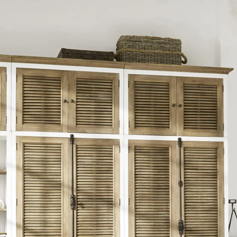 Elegante Ergänzung: Mit diesem doppelten Aufsatz erweitern Sie nicht nur das Fassungsvermögen der Schränke (19350 und 19351) des modularen Schranksystems. Die zweitürige Erweiterung sorgt zudem durch das aparte Würfeldesign für eine noch attraktivere Optik. Wie die Schränke ist auch der Aufsatz in hochwertiger Handarbeit aus robustem und pflegeleichtem Mangoholz gefertigt. Da die Kranzleisten und die Sockelleisten des Systems bei allen Komponenten abnehmbar sind, kann der Aufsatz ganz einfach auf einem der passenden Schränke befestigt werden. Die Leisten lassen die Einzelteile mit dem entsprechenden Schrank harmonisch verschmelzen. So erfreut sich die Kombination einer einheitlichen Optik. Im Inneren ist der Aufsatz durch ein Ablagebrett in zwei Bereiche unterteilt und bietet ein ansehnliches Fassungsvermögen. Damit haben Sie zusätzlichen Stauraum, den Sie insbesondere für Kleidung und Stoffe nutzen können, die Sie eher selten benötigen wie Bettlaken, Saunatücher oder Decken.
