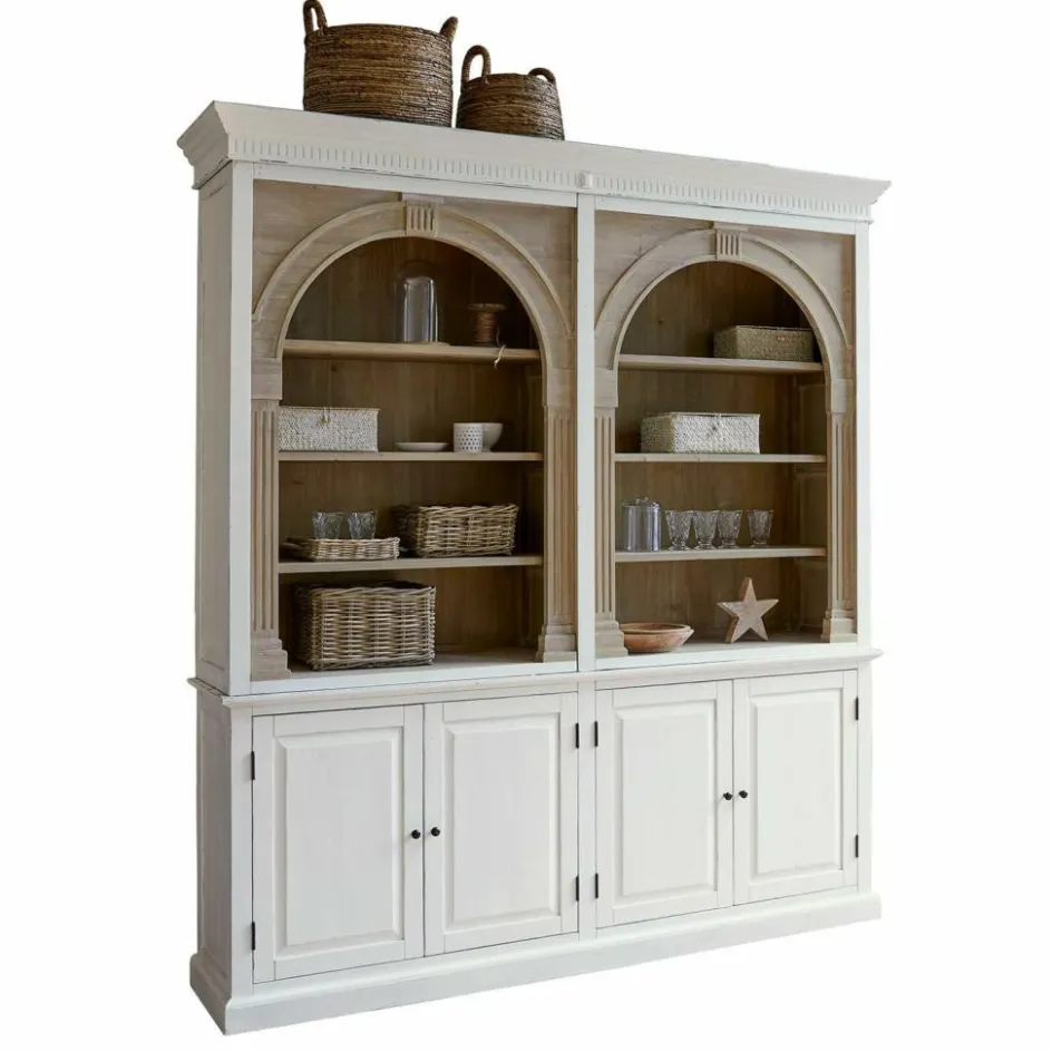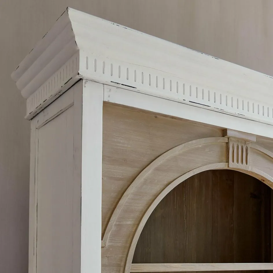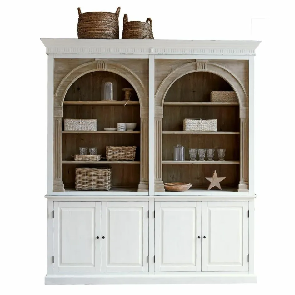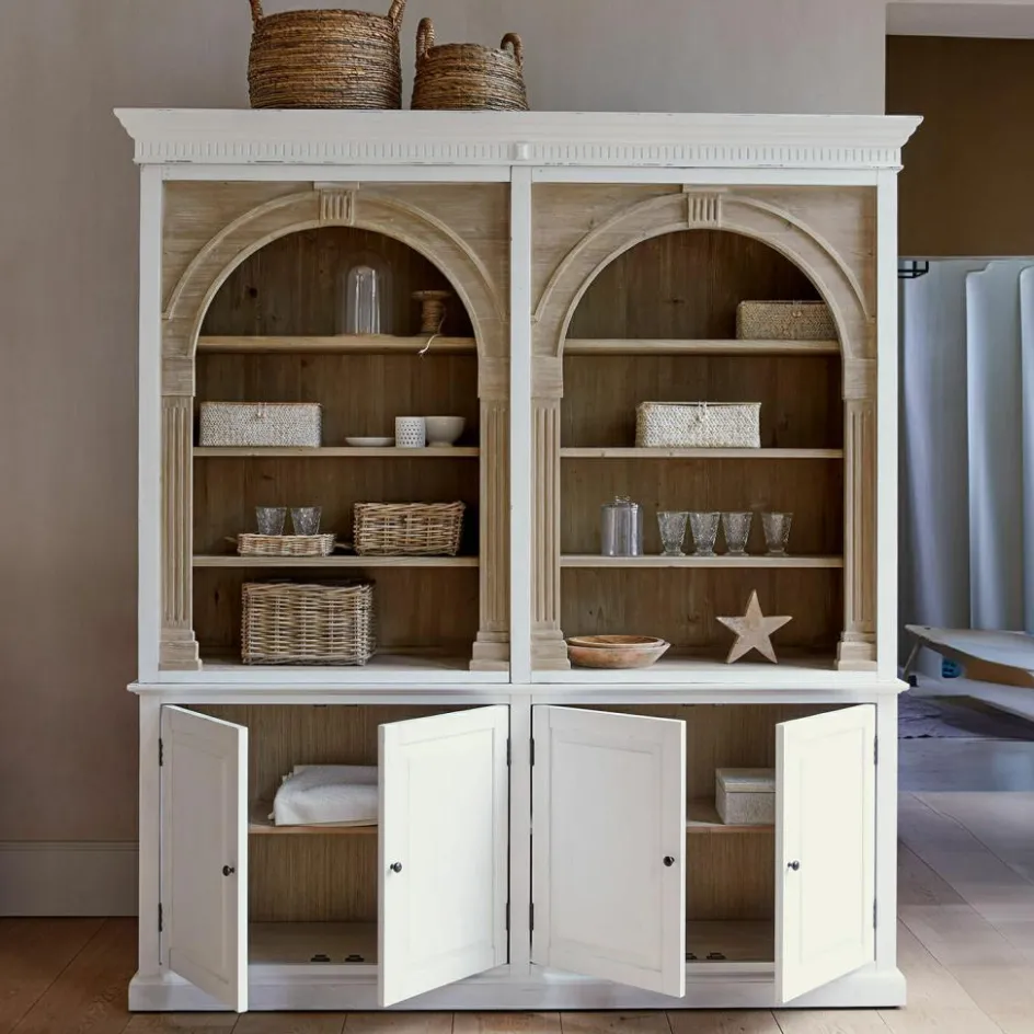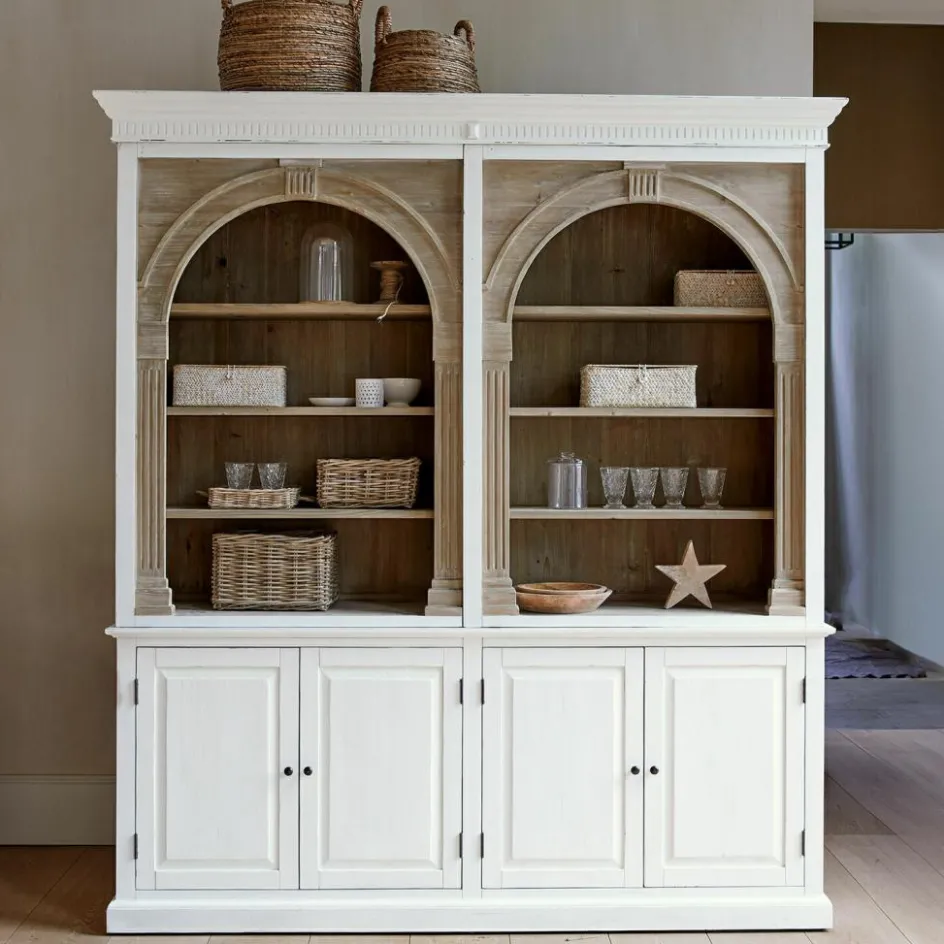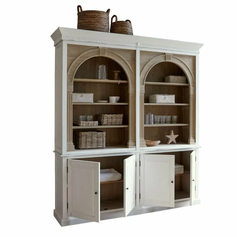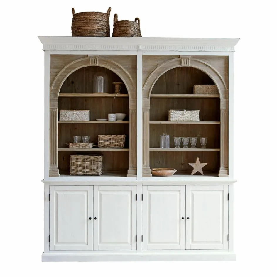 Dieser außergewöhnliche Schrank vereint nachhaltige Materialien mit einem trendbewussten Design. Gefertigt aus wiederaufbereitetem Tannenholz, erzählt jedes Stück seine eigene Geschichte durch die natürlichen Maserungen und Texturen des Holzes. Die gewölbten, bogenförmigen Elemente im oberen Teil setzen einen eleganten Akzent, der dem Schrank eine einzigartige Note verleiht und dem aktuellen Trend folgt. Das zweifarbige Design ist besonders raffiniert: Der obere Teil bleibt naturbelassen, um die Schönheit des Holzes zu betonen, während der untere Teil in einem stilvollen Antik-Finish lackiert ist, das dem Möbelstück einen Hauch von Vintage-Charme verleiht. Die Kombination aus rustikalem Charme und modernem Design macht diesen Schrank zu einem unverzichtbaren Highlight in jedem stilvollen Zuhause.