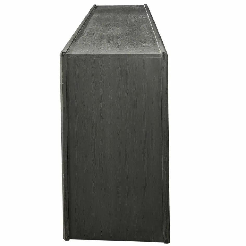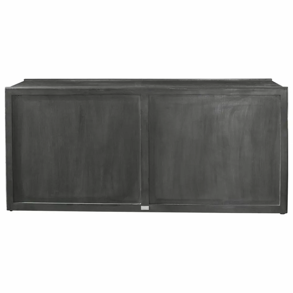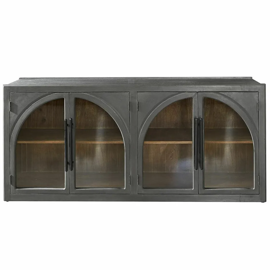 Das abgebildete Sideboard vereint moderne Eleganz mit rustikalem Charme. Aus hochwertigem Mangoholz gefertigt, präsentiert es sich mit einer schwarz lackierten Außenseite, die in harmonischem Kontrast zum naturbelassenen Innenraum steht. Die Türen sind mit trendigen Rundbögen gestaltet, die dem Möbelstück eine zeitlose Schönheit verleihen. Dieses Sideboard bietet nicht nur reichlich Stauraum, sondern setzt auch ein stilvolles Statement in jedem Raum. Die warme Haptik des Holzes und die liebevolle Verarbeitung machen es zu einem einzigartigen Stück, das Funktionalität und Ästhetik perfekt kombiniert.