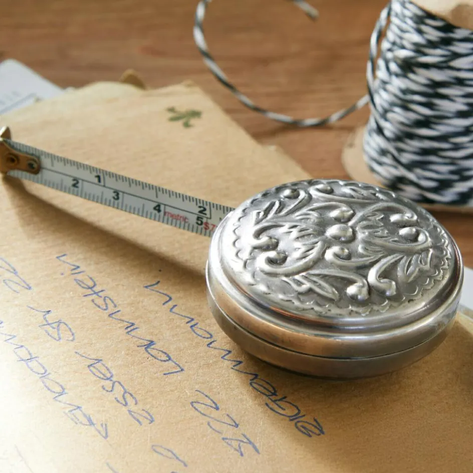 Passt die Kommode, die Sie gerade entdeckt haben, in die Nische im Flur? Reicht der zarte Stoff noch für die Scheibengardine, die Sie gerne nähen wollen? Fragen, die Sie innerhalb weniger Momente beantworten können, wenn Sie dieses stilvolle Maßband besitzen. In sein rundes Messinggehäuse wurden von Künstlerhand Ornamente eingeprägt, die vom Glanz des Metalls zusätzlich betont werden. Im Inneren wartet ein zwei Meter langes Maßband aus Stahl auf seinen Einsatz. Ein Maßband also, das als kleines Schmuckstück mit Vintage-Flair die praktische Funktion mit einem kunstvoll verzierten Äußeren zu verbinden weiß und sich außerdem wie ein Handschmeichler anfühlt. Griffbereit auf dem Schreibtisch oder im Regal deponiert wirkt es wie ein dekoratives Schmuckstück, es begleitet Sie aber auch gerne in der Handtasche überall hin.
