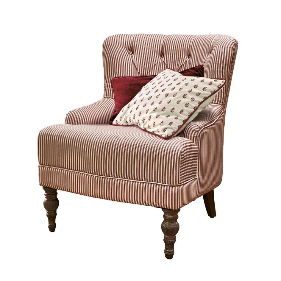 Dieser Chesterfield-Sessel ist ein Statement für zeitlose Behaglichkeit und geschmackvolles Design. Der Bezug aus reinem Leinen, dessen dezentes Streifenmuster in sanften Naturtönen gehalten ist, verleiht dem Möbelstück eine entspannte, klassische Ausstrahlung. Die Polsterung ist bewusst fest gestaltet, um sowohl Komfort als auch langlebige Formstabilität zu gewährleisten – perfekt für lange Abende mit einem guten Buch oder einem Glas Wein. Die Beine aus massivem Eichenholz fügen dem Design eine natürliche, rustikale Note hinzu, die sowohl zu traditionellen als auch zu modernen Einrichtungsstilen passt. Dank der dezenten Piping-Nähte an den Kanten wirkt der Sessel besonders formvollendet und lädt zum Verweilen ein.