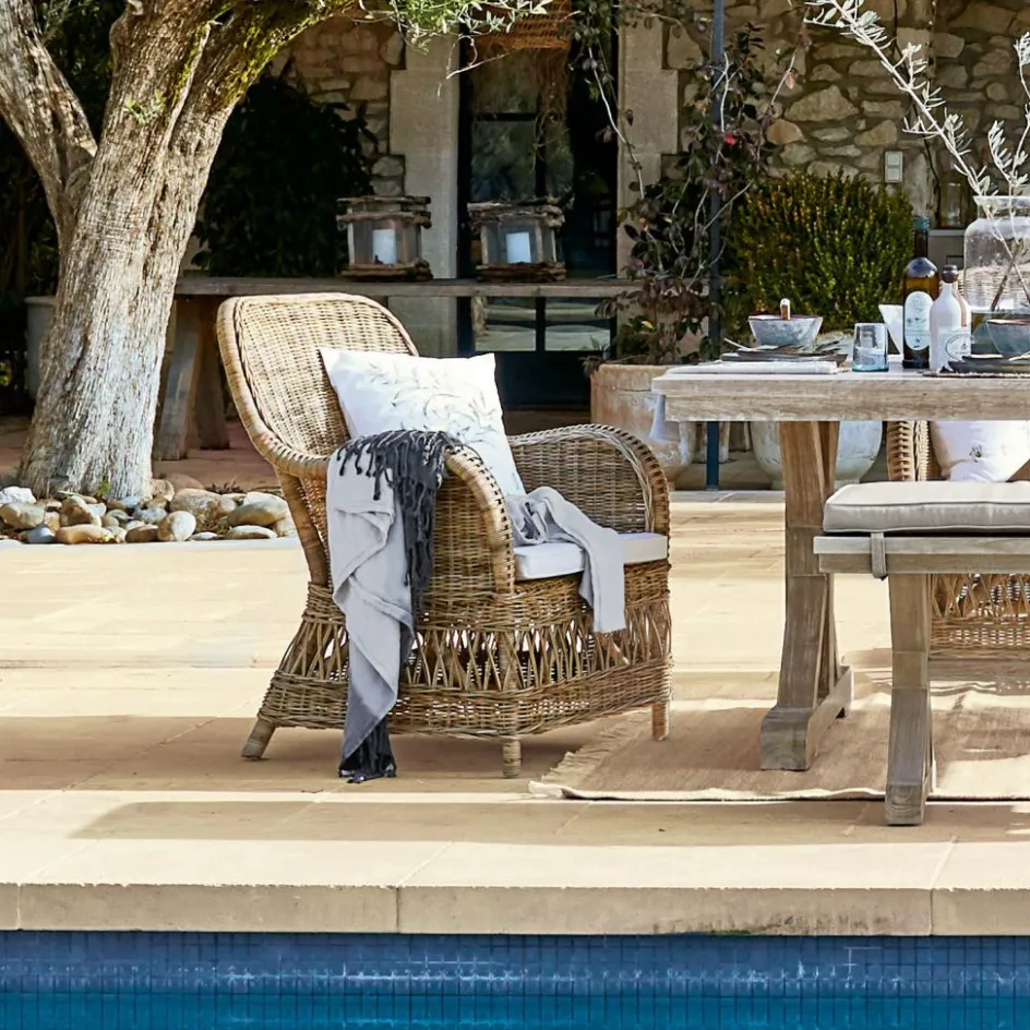 Sie treten an einem schönen Sommermorgen hinaus auf die Terrasse, lauschen dem vielstimmigen Gesang der Vögel und setzen sich für einen Moment in Ihren neuen Terrassensessel. Das hochwertige Geflecht begrüßt Sie sogleich mit dem charakteristischen, leisen Knarzen, wie es nur ein Sessel aus echtem Rattangeflecht kann. Genießen Sie dann, wie Sie ein Wohlgefühl ohnegleichen überkommt, denn der Sessel bietet Ihnen eine großzügige Sitzfläche, extra breite Armlehnen und eine angenehm hohe Rückenpartie, an die Sie sich entspannt anlehnen können. Aber natürlich wird auch das bequem gepolsterte Sitzkissen seinen nicht unerheblichen Beitrag zu Ihrem Sitzkomfort leisten. Neben dem hohen Maß an Bequemlichkeit verwöhnt Sie der Sessel aber auch mit einer edlen Natürlichkeit, wie sie das echte Rattangeflecht ausstrahlt. Außerdem legt jeder Zentimeter des Sessels Zeugnis ab von der Kreativität und Geschicklichkeit, mit der ein erfahrener Korbflechter aus einzelnen Rattantrieben dieses geflochtene Meisterwerk entstehen ließ. Natürlich in reiner Handarbeit, denn bis heute gibt es keine Maschinen, die ein so kunstvolles Flechtwerk herstellen können wie ein Mensch mit entsprechenden Kenntnissen und geschickten Händen. Und was Ihr Glück perfekt machen wird: Der Sessel ist zudem nachhaltig und ein reines Naturprodukt.