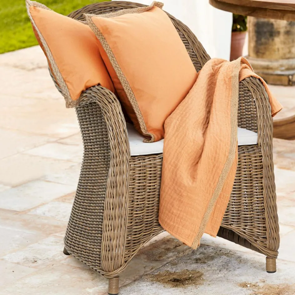 Wer liebt es nicht – das entspannte Lebensgefühl des mediterranen Raumes! Und wo lässt sich das besser genießen als in einem Sessel wie diesem hier? Zumindest während der vielen Sommertage und Abende, die man nicht unter südlicher Sonne verbringen kann. Da aber auch die Sommer nördlich der Alpen mediterranen Charakter annehmen, wird das Urlaubsfeeling auf Ihrer Terrasse perfekt werden. Ganz gleich, ob Sie während der Gartenarbeit mal solo eine kurze Pause in diesem Sessel einlegen oder sich die Freunde um den Tisch versammeln, weil Sie zum traditionellen Barbecue eingeladen haben – alle werden das außergewöhnliche Sitzerlebnis in diesem Sessel zu schätzen wissen. Das hohe Rückenteil lädt zum entspannten Anlehnen ein, während die Arme auf den geschwungenen Armlehnen ruhen – so lässt es sich gemütlich plaudern, bis plötzlich die Sterne am Himmel leuchten. Doch auch, wenn Sie mal keine Zeit zum Platz nehmen haben, wird das elegante Design eine Freude fürs Auge sein. Das dekorative Geflecht sieht aus wie echtes Rattan, ist aber ein modernes Kunststoffgeflecht mit hervorragenden Outdoor-Eigenschaften. Die elastischen Kunststofffasern, die wie Naturrattan in aufwändiger Handarbeit geflochten werden, sind absolut nässe- und wetterbeständig, so dass Sie den Sessel unbesorgt den ganzen Sommer draußen im Freien stehen lassen können.