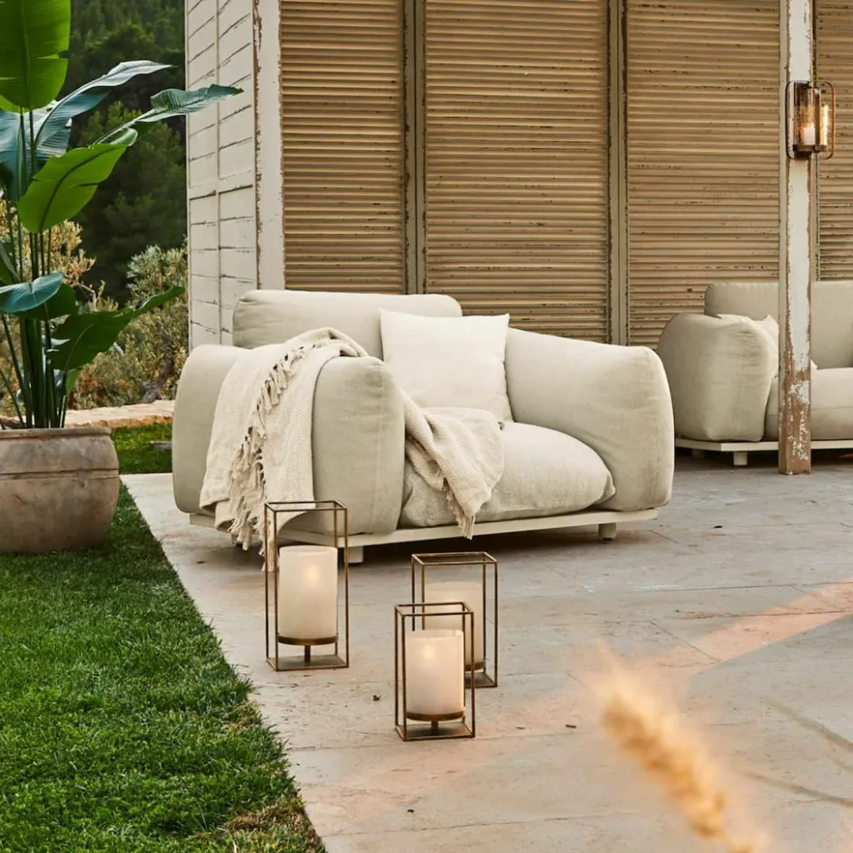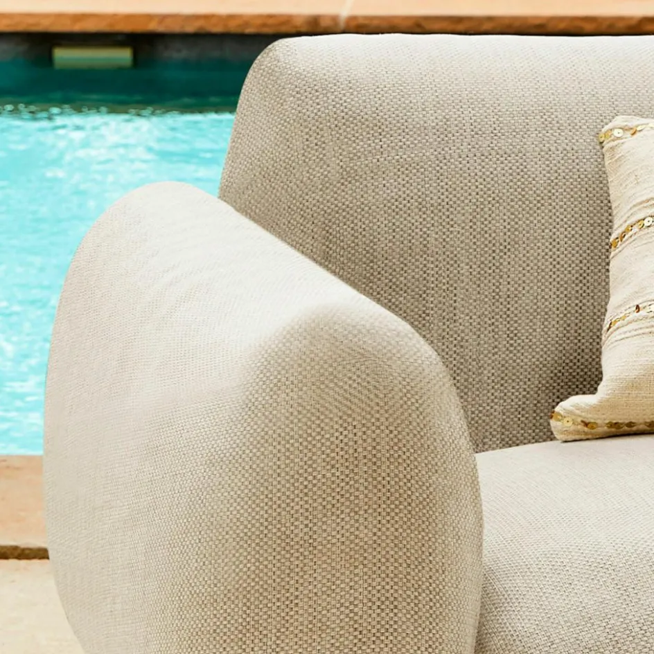Ein Outdoor-Sessel, der keine Kompromisse bei Komfort und Funktionalität macht. Seine großzügigen Polster und die tief angelegte Sitzfläche schaffen eine gemütliche Rückzugsmöglichkeit im Freien. Der weiche, leicht wasserabweisende Olefinfaser-Bezug verleiht ihm nicht nur Beständigkeit gegen die Elemente, sondern fühlt sich auch angenehm an. Die sanft abgerundeten Arm- und Rückenlehnen sorgen für zusätzliche Geborgenheit.