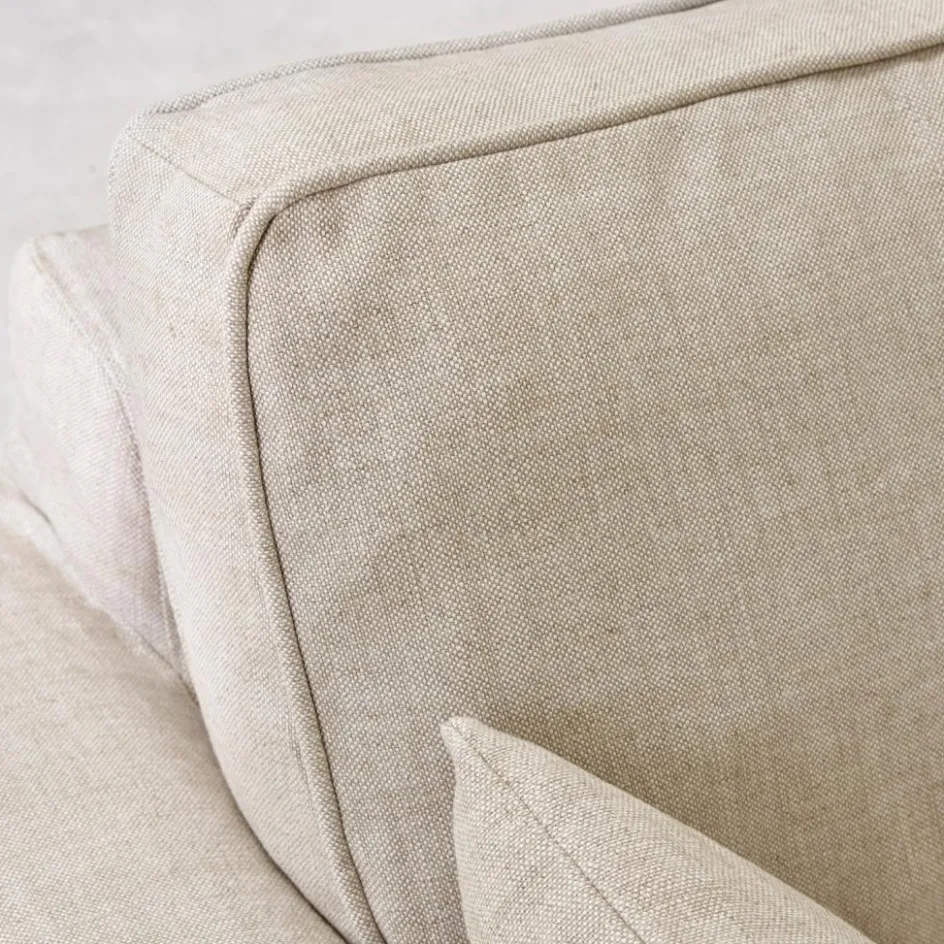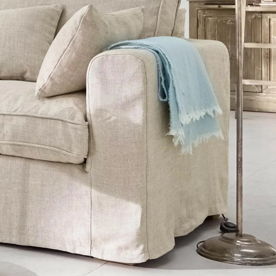Wieso Ausgehen? Bleiben Sie einfach daheim. Mit diesem Sofa verwandeln Sie Ihr Wohnzimmer in einen absoluten Hot-Spot. Die große Couch mit eingebauter Récamière auf der linken Seite besteht aus einem stabilen Massivholzgestell und einer hochwertigen Schaumstoffpolsterung – genug Platz zum Ausstrecken inklusive. Darüber hinaus punktet das Sitzmöbel mit einem schönen Bezugsstoff mit hohem Leinenanteil, einer exzellenten Verarbeitung und acht zusätzlichen Kissen mit aufwendig gearbeiteten Kedernähten. Dieses Sofa ist noch in weiteren Farben bei uns erhältlich und in der Variante mit der Ecke auf der rechten Seite. Sie haben die Wahl!