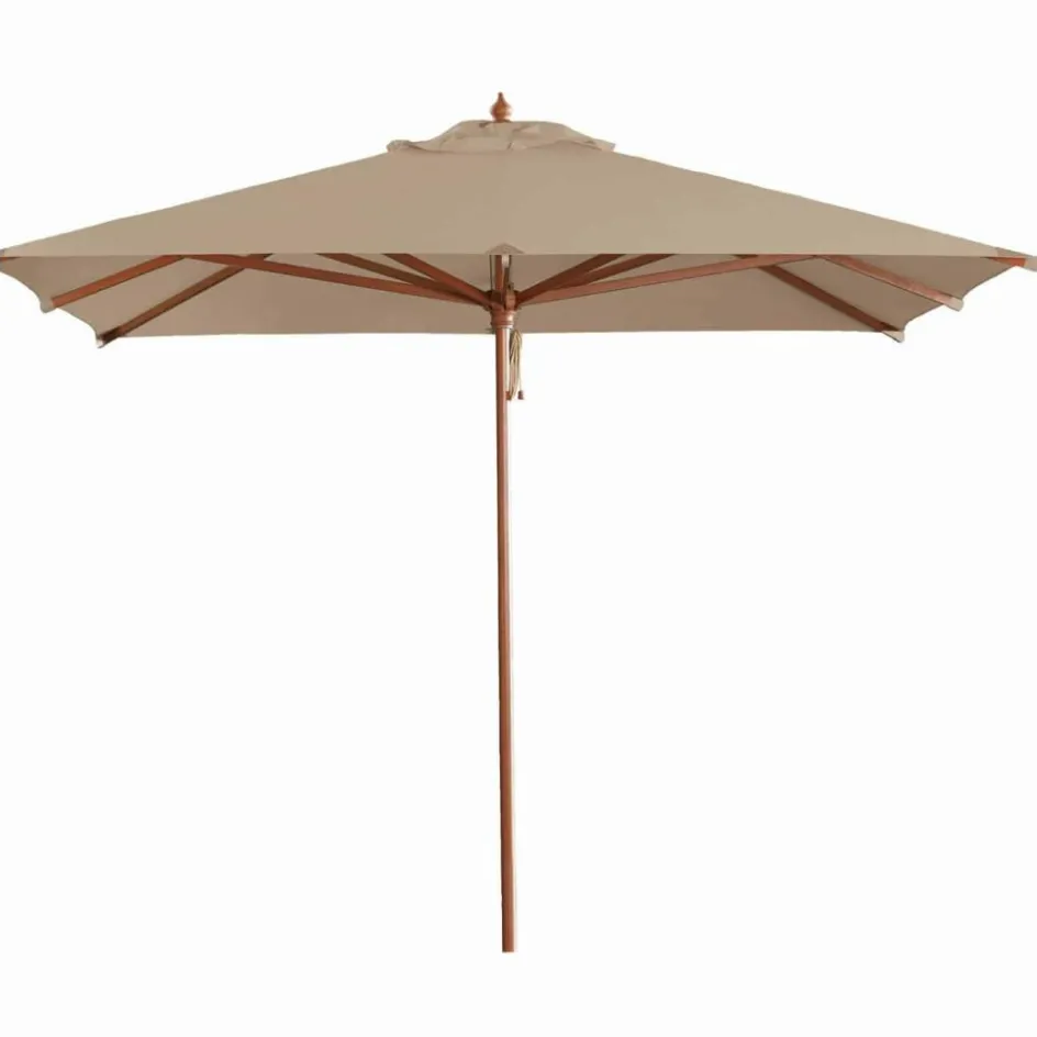 Der quadratische Sonnenschirm wird auch höchsten Ansprüchen gerecht: Das Gestänge ist aus Eukalyptusholz gearbeitet, die Schirmstreben stecken in stabilen Metallhülsen. Bespannung aus robustem Olefin hält auch mal einem Regenschauer Stand. Bequemes Öffnen und Schließen durch den doppelten Flaschenzug, ist er aufgespannt verschwindet das Seil in einem kleinen Ledermäppchen. Windsicher durch die Sturmhaube. Einen passenden Schirmständer finden Sie separat hier bei uns im Shop.