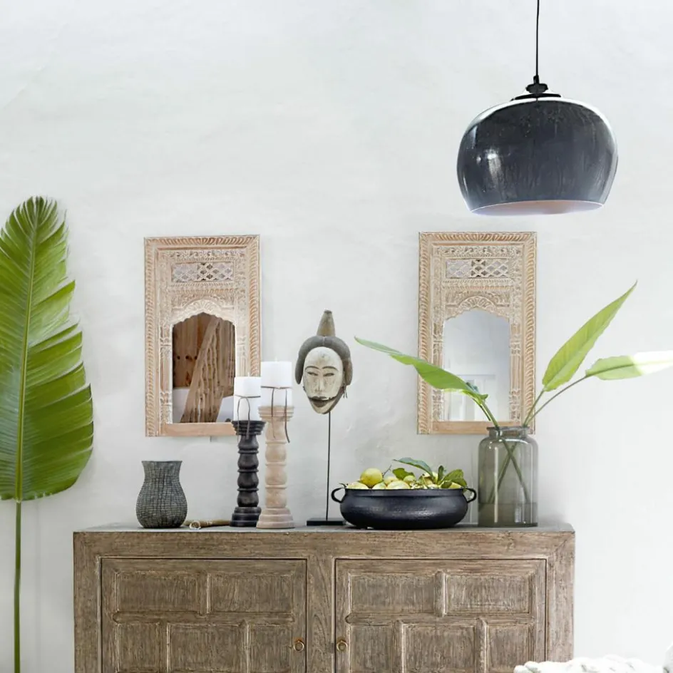 Ein wahres Schmuckstück für jeden Raum: Dieser Spiegel vereint kunstvolle Handwerkskunst mit einer dezenten, weiß gekalkten Oberfläche. Die detaillierten Schnitzereien im orientalischen Stil verleihen ihm eine besondere Ausstrahlung und verwandeln ihn in ein dekoratives Highlight an jeder Wand. Die filigranen Muster schaffen ein harmonisches Zusammenspiel aus Struktur und Form, das nicht nur Räume optisch vergrößert, sondern auch das Ambiente aufwertet. Ob im Flur, Schlafzimmer oder Wohnzimmer – dieser Spiegel bringt exotischen Charme in Ihr Zuhause.