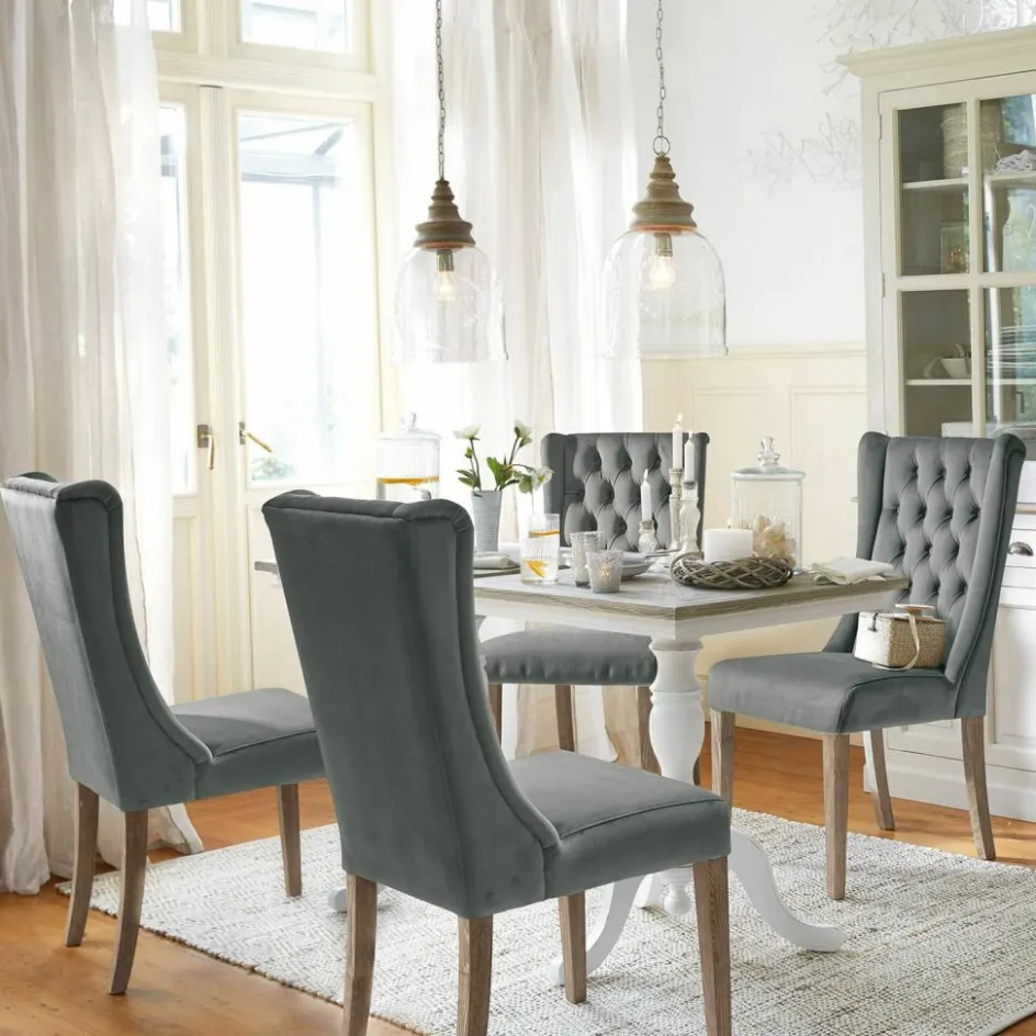Ein traumhaft schöner Stuhl, der wirklich jeden Raum adelt. Er dürfte zu einem neuen Lieblingsmöbel werden. Das handgefertigte Schmuckstück bezaubert mit einem Bezug in hoher Qualität. Eine edle Chesterfield-Steppung verleiht ihm noch mehr Charakter. Das Gestell besteht aus wertvollem Eschenholz mit Antik-Finish. Die harmonischen Linien und die angenehme Farbgebung zeichnen das elegante Design aus. Zudem ist er sehr komfortabel gepolstert. Der feine Stuhl sieht wunderhübsch zum Landhaus-Stil und Shabby-Chic aus. Ob am Arbeitstisch, am Schminktisch, dekorativ genutzt oder natürlich am Esstisch: Nehmen Sie Platz und freuen Sie sich über dieses stilsichere und beschwingte Design.