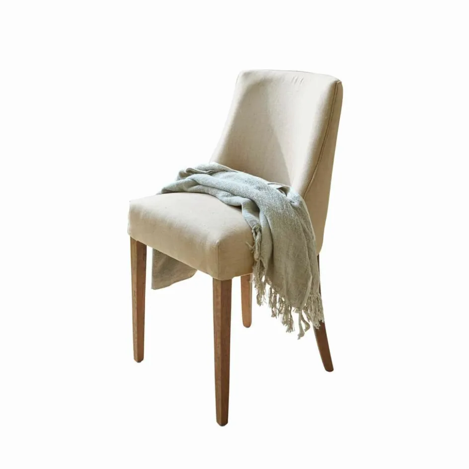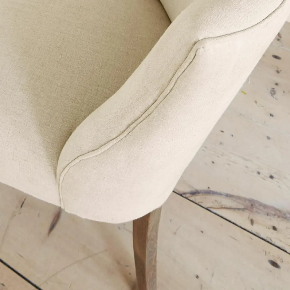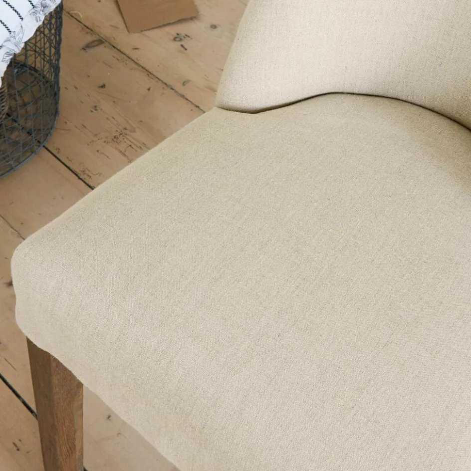 Dieser Stuhl verbindet natürliche Materialien mit einer einladenden Optik, die jedem Raum sofort mehr Behaglichkeit verleiht. Der Bezug aus reinem Leinen schmeichelt mit seiner weichen Textur und sorgt für ein angenehm entspanntes Sitzgefühl. Die warmen, hellen Naturtöne lassen sich mühelos in verschiedene Einrichtungsstile integrieren, während die Beine aus stabilem Eichenholz einen rustikalen Akzent setzen. Der zeitlose Charme dieses Stuhls macht ihn zu einem vielseitigen Lieblingsstück, das sich sowohl im Essbereich als auch im Arbeitszimmer ideal einsetzen lässt. Er ist der perfekte Begleiter für lange Abendessen oder gemütliche Lesestunden und überzeugt mit einem Mix aus schlichtem Design und hohem Komfort.
