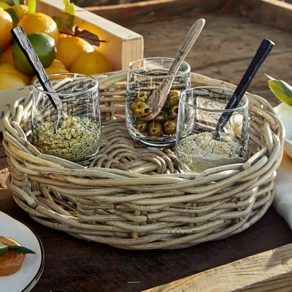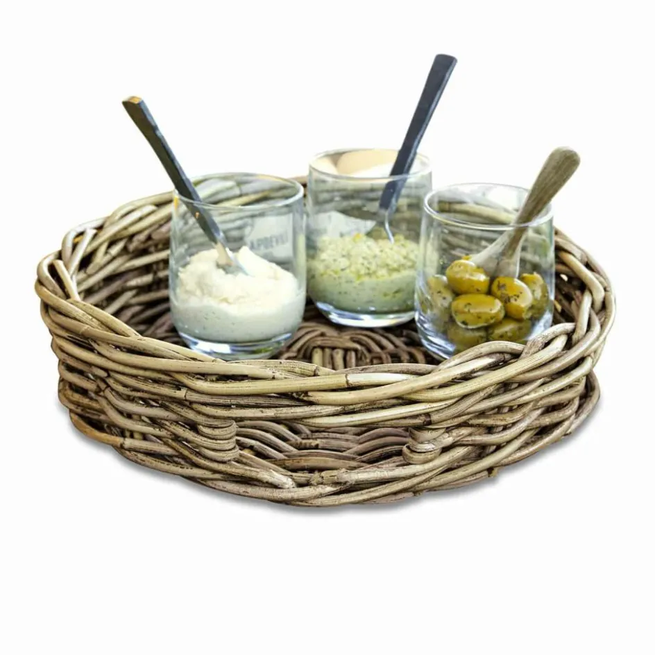 Die Korbflechterei ist eine alte Handwerkskunst, an der die technischen Entwicklungen der Neuzeit nahezu komplett vorbeigegangen sind. Das bedeutet, dass dieses Tablett wie vor Jahrhunderten ganz traditionell von Hand aus Rattan geflochten wurde. Rattan, besser gesagt die Rotang-Palme, wächst in den tropischen Regenwäldern Asiens, wo sie sich mit ihren langen Trieben bis in die Spitzen der Bäume schlängelt. Nach der Ernte der Triebe, bei der die Urwaldbäume übrigens unangetastet bleiben, werden diese über Wochen feucht gelagert, um das Material geschmeidiger und flexibler zu machen. Gleichzeitig erhält die Naturfaser dadurch ihre einzigartige Farbe, ganz ohne den Einsatz von Chemie. Anschließend werden dann Accessoires wie dieses Tablett in einer jahrhundertealten Technik sorgfältig geflochten, die dem Tablett nicht nur die wunderschön gleichmäßige Struktur, sondern auch eine ausgezeichnete Stabilität verleiht. Und weil es sich der Korbmacher nicht hat nehmen lassen, gleich zwei praktische Griffmulden in das Geflecht einzuarbeiten, können Sie das Tablett zum Servieren wie zum Dekorieren einsetzen.