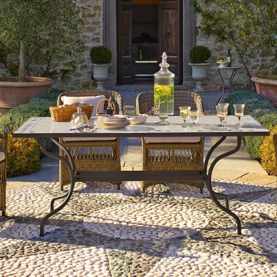Ein Leben abseits des mediterranen (Lebens)stil ist möglich – aber sinnlos. Viel zu schön ist die Leichtigkeit des Seins, viel zu lecker sind Weine und Speisen. Und: Die beste Grundlage hierfür bietet dieser Tisch. Er steht sicher auf vier eisernen Beinen. Oben auf ruht eine schwere Platte aus Zementguss, die in liebevoller Handarbeit mit einem dekorativen Mosaik versehen wurde. Der mediterrane Look des Gartentisches wird noch von der Farbgebung in den Tönen Creme und Terrakotta unterstrichen. Zudem bietet der Tisch ausreichend Platz für sechs bis acht Personen. Perfekt, um an lauen Sommerabenden dem südlichen Flair des eigenen Gartens zu erliegen. Dazu empfehlen wir aromatische Oliven, getrocknete Tomaten, deftiges Brot und herben Wein. Guten Appetit!