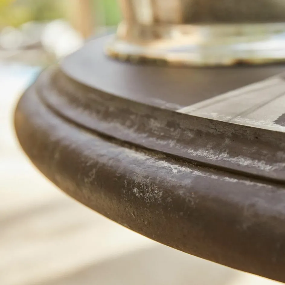 Der monumentale Steintisch darf ganzjährig draußen bleiben und bildet so rund ums Jahr einen imposanten Blickpunkt! Platte und Fuß sind separat aus einem wetterfesten Natursteingemisch gefertigt, tiefenimprägniert und spezialgehärtet. So entwickelt sich im Laufe der Jahre eine wunderschöne Patina, die von echten historischen Stücken dieser Art kaum zu unterscheiden ist. Durch die eigenständige Wirkung passend zu Stühlen jeder Stilrichtung. Die Lieferung besteht aus zwei Teilen und ist von zwei Personen gut zu handhaben. Abstand vom Boden zur Unterkante des Tisches: 67,5 cm.