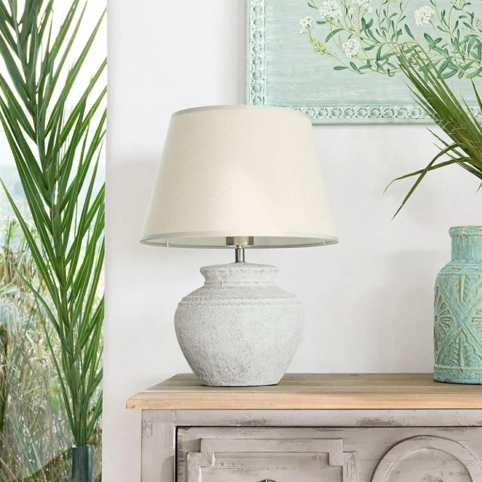 Tischleuchten spenden nicht nur Helligkeit, sondern sie helfen auch dabei, das Zuhause in ein perfektes Licht zu rücken. Mit der richtigen Akzentbeleuchtung lässt sich die Wirkung und Atmosphäre eines Raumes komplett verändern. Dass sich mit Hilfe von Licht unterschiedliche Stimmungen erzeugen lassen, wussten schon unsere alten Vorfahren. Damit wären wir auch schon bei diesem speziellen Modell, das eine ganz besondere Ausstrahlung hat. Der Lampenfuß wurde aus Keramik gefertigt und punktet mit einem Finish im Antik-Look sowie raffinierten Reliefs. Der Lampenschirm aus grob gewebtem Leinenstoff komplimentiert das stilvolle Design und streut das Licht sehr angenehm, dank seiner großzügig dimensionierten Öffnungen. Mit dieser Tischleuchte lassen sich eine Vielzahl von Designästhetiken von klassisch bis zeitgenössisch und mehr ergänzen.