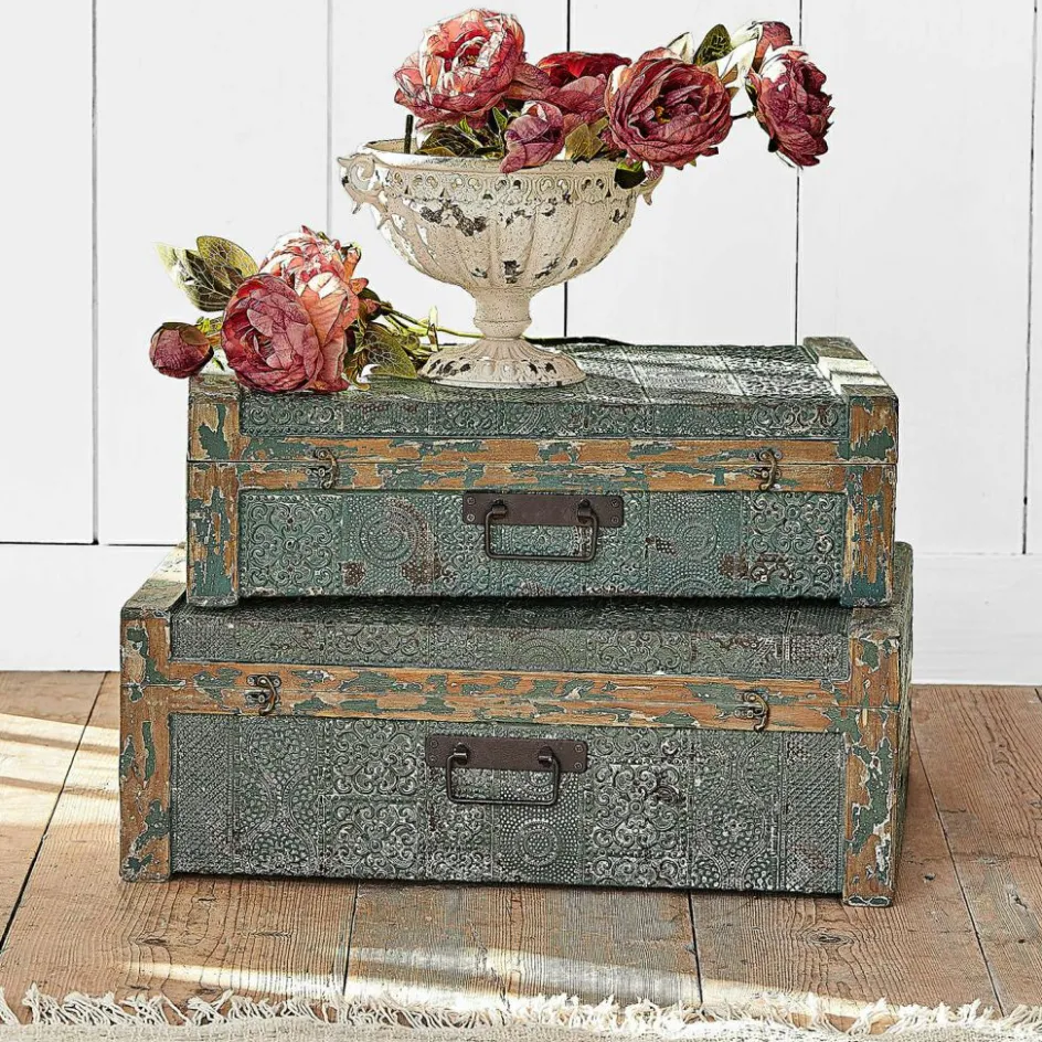 Diese Truhen im 2er Set vereinen Funktionalität und Charakter in einem außergewöhnlichen Design. Gefertigt aus stabilem Holz und mit beeindruckenden Ornamenten versehen, ziehen sie alle Blicke auf sich. Das authentische Shabby-Finish verleiht ihnen eine nostalgische Note, die an vergangene Zeiten erinnert. Sie bieten nicht nur großzügigen Stauraum für allerlei Schätze, sondern passen auch noch perfekt ineinander – ideal für platzsparende Aufbewahrung. Ob als dekoratives Highlight im Wohnzimmer oder als Aufbewahrungslösung im Schlafzimmer, dieses Set bringt Charme und Ordnung in jeden Raum.