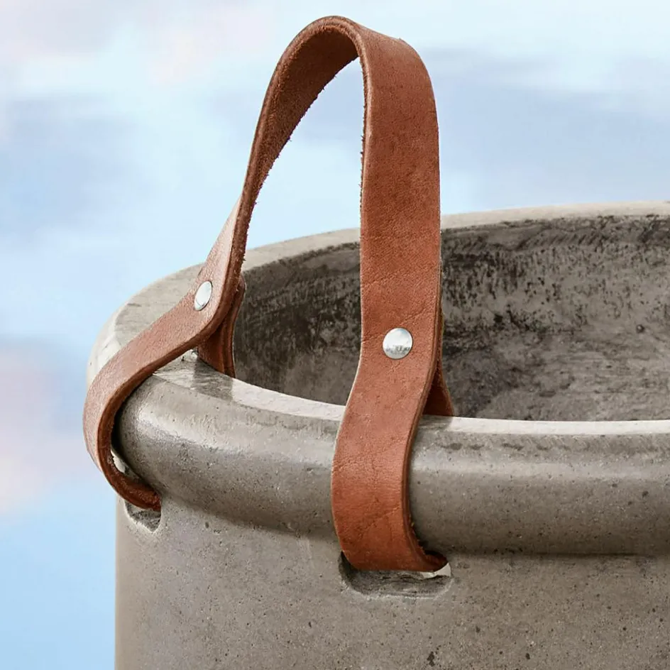 Dieses Duo besticht durch klare Linien und eine kraftvolle Präsenz. Gefertigt aus massivem Material, bringen die Töpfe Stabilität und Eleganz in Ihre Außenbereiche. Die geschmeidigen Griffe in Leder-Optik bieten nicht nur Komfort beim Transport, sondern verleihen dem Design eine raffinierte Note. Sie sehen aus wie Leder sind aber aus Jute und Kokosfasern hergestellt. Ob auf der Terrasse, im Garten oder im Eingangsbereich – diese Pflanzgefäße schaffen einen Blickfang. Durch die integrierten Wasserablauflöcher bleiben Ihre Pflanzen gesund, und im Winter empfiehlt sich ein geschützter Standort, um die Schönheit dieses Sets zu bewahren.