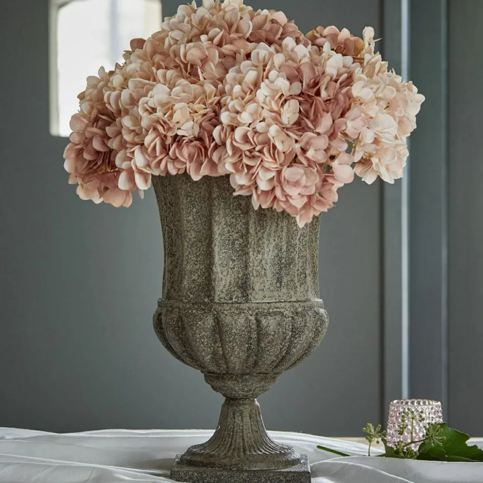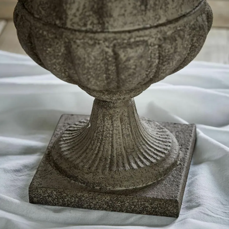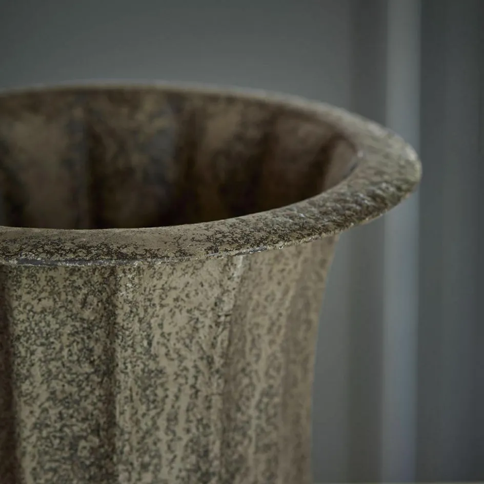 Holen Sie sich ein Stück Geschichte nach Hause und erleben Sie eine wirklich traumhaft schöne Amphore, die wie ein Fundstück aus der Antike erscheint. Sie besteht aus Eisen mit Antik-Finish samt leicht gekalkter, matter Optik. Das edle Design ist besonders stilecht und attraktiv geformt. In alter Zeit wurden damit Öl, Honig oder Getreide transportiert, heute können wir uns über ein sehr ästhetisches Deko-Element mit Vintage-Charakter freuen. Lassen Sie das Schmuckstück pur auf einer Kaminkonsole oder der Anrichte wirken oder verzieren Sie es mit Trockengestecken oder Kunstblumen – in jedem Fall zieht hiermit antikes Flair ein, welches vorzüglich zu einem Ambiente im Shabby-Chic passt und jeden Raum adelt.