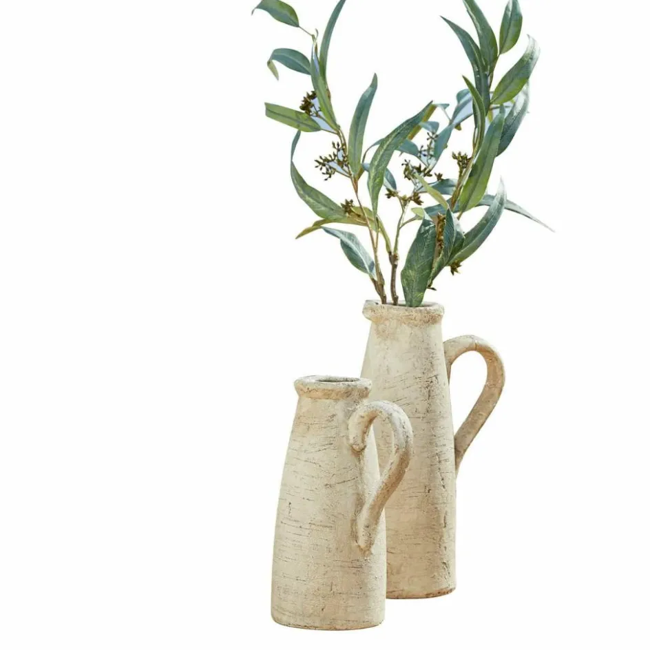 Keine Krüge im klassischen Sinn, doch wunderschön: Das schicke Duo ist nicht wasserdicht, da es als Deko oder für Trockenblumen gedacht ist. Gefertigt sind die faszinierenden Krüge in stilvoller Antik-Optik aus natürlicher Terrakotta – und zwar per Hand. Damit handelt es sich um liebevolle Wertarbeit, die sich durch immer unterschiedliche Strukturen auszeichnet. So wird jeder Krug zu einem Unikat. Freuen Sie sich auf charmante Akzente in zwei unterschiedlichen Größen in Ihrem schönen Zuhause.