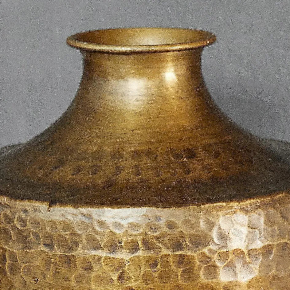 Ein Blickfang, der Geschichte erzählt: Diese Vase aus Aluminium verbindet traditionelles Handwerk mit zeitloser Ästhetik. Ihr gehämmertes Muster, das mit Liebe zum Detail gefertigt wurde, sorgt für eine außergewöhnliche Haptik und visuelle Tiefe. Das Antik-Finish verleiht ihr eine edle Patina, die Wärme und Charakter ausstrahlt. Ob als Solitärstück auf einem Sideboard oder als kunstvolle Ergänzung zu einem Blumenarrangement – diese Vase setzt stilvolle Akzente in Ihrem Zuhause. Lassen Sie sich von der kunstvollen Kombination aus Form und Material inspirieren und verwandeln Sie Ihre Wohnräume in ein stilvolles Ambiente.