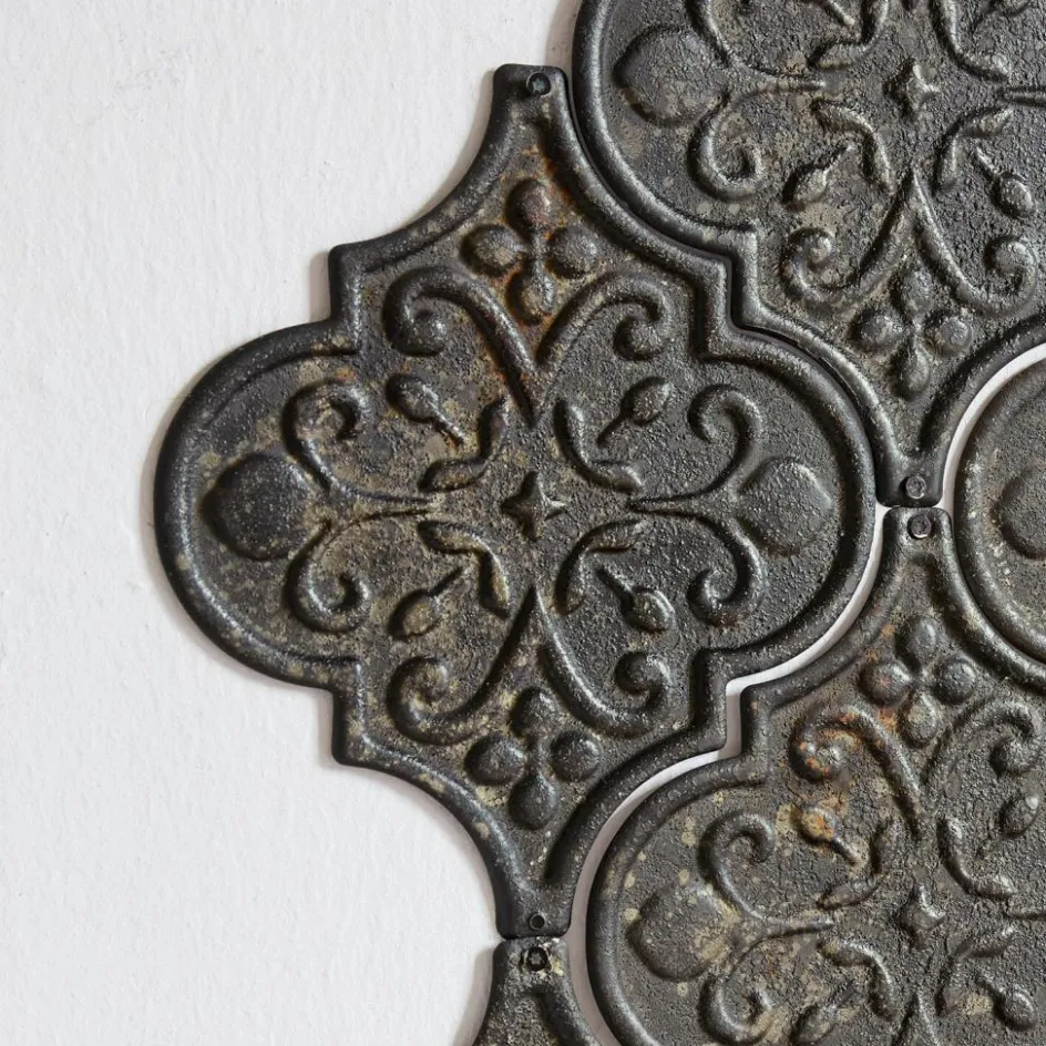Eine Welt volle historischer Schönheit eröffnet sich mit diesem handgefertigten Wandornament aus robustem Eisen. Das kunstvoll eingearbeitete Muster und das authentische Antik-Finish verleihen diesem Stück eine einzigartige Ausstrahlung, die sowohl nostalgisch als auch stilvoll ist. Die antike Patina und die feinen Verzierungen erzählen Geschichten vergangener Zeiten und bringen einen Hauch von Vintage-Eleganz in Ihr Zuhause. Ob als einzelnes Highlight an der Wand oder in Kombination mit anderen Dekorationselementen – dieses Wandornament zieht alle Blicke auf sich und schafft eine Atmosphäre von erhabener Schönheit. Zur Anbringung können die einzelnen Elemente einfach mit einem Nagel in der oberen Spitze befestigt werden.