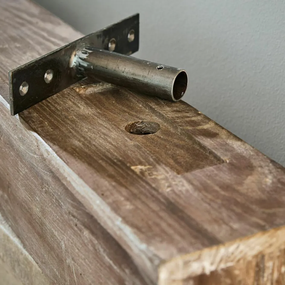 Nachaltig, natürlich und wunderschön anzusehen: Mit dieser Konsole holen Sie sich Natur pur in Ihre vier Wände. Sie besteht aus wiederaufbereitetem Kiefernholz und besticht durch Ihre deutliche Maserung. Schaffen Sie sich mit diesem Schmuckstück eine Atmosphäre, wie sie nur Holz schenken kann. Die Optik, das Gefühl an der Hand, der Geruch – das Naturmaterial hat von jeher eine ganz besondere Wirkung auf uns, die wir immer fühlen, wenn wir durch den Wald spazieren gehen. Aber auch ein Interieur aus Holz verbreitet dieses wunderbare Gefühl. Auf ihrer praktischen Seite findet die Konsole maximalen Halt an der Wand, da sie mit einer Eisenhalterung befestigt wird, die perfekt m Regal verschwindet. So wirkt das Regal als würde es schweben. Auf dieses natürlich schöne Regal können Sie neben schmucken Dekoartikeln selbst schwere Skulpturen platzieren.