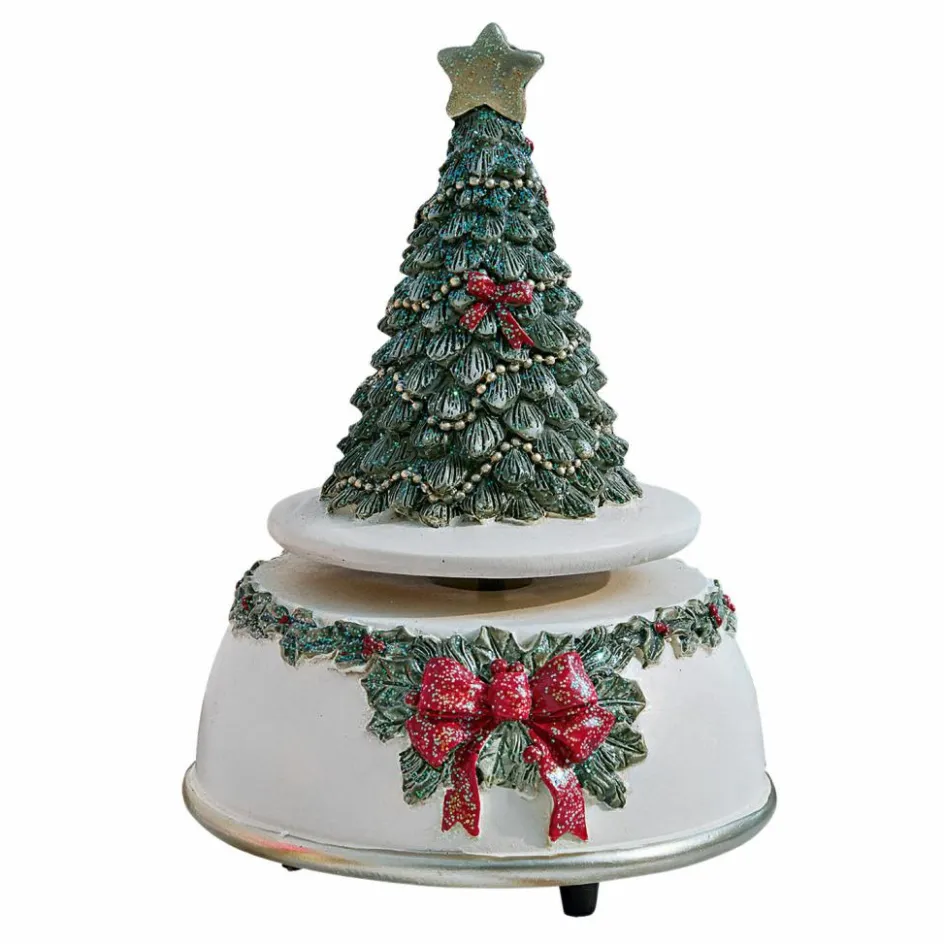 Die wunderhübsche Spieluhr mit reizendem Weihnachtsbäumchen ist eine wertvolle Handarbeit. Sie besteht aus Polyresin mit leichtem Glitzer-Finish. Jedes Detail ist liebevoll gestaltet. Das Bäumchen dreht sich, und sie spielt nach dem Aufziehen den Klassiker Jingle Bells – ein Garant für gute Laune und Festtagsstimmung. Freuen Sie sich über dieses wunderbar einfache Vergnügen, das an die Feste früherer Zeiten erinnert. Lassen Sie die reizende Spieluhr Ihren Tisch oder eine Konsole schmücken und erleben Sie eine besonders stimmungsvolle Weihnachtszeit. Eine neue Weihnachtstradition mit Vintage-Charme – alle Jahre wieder ein Genuss.