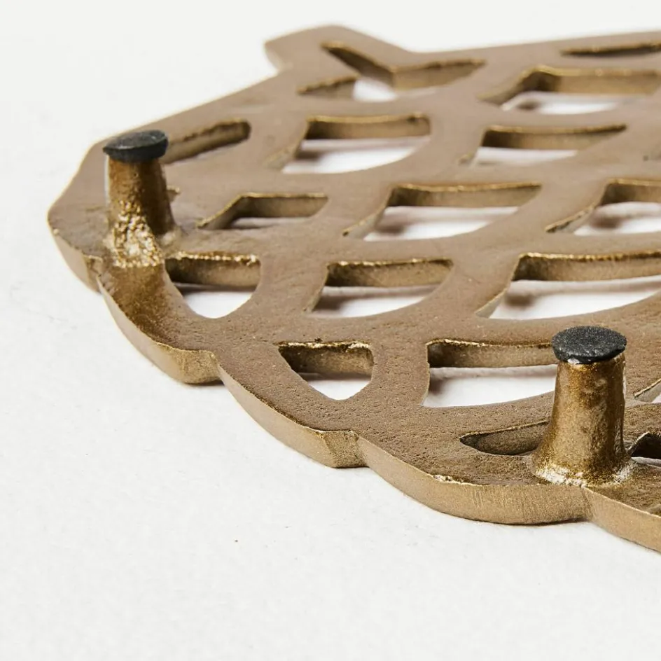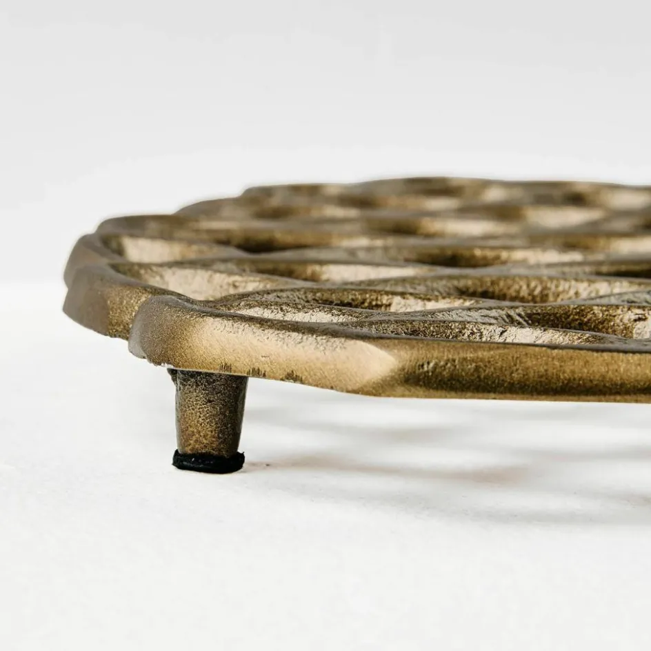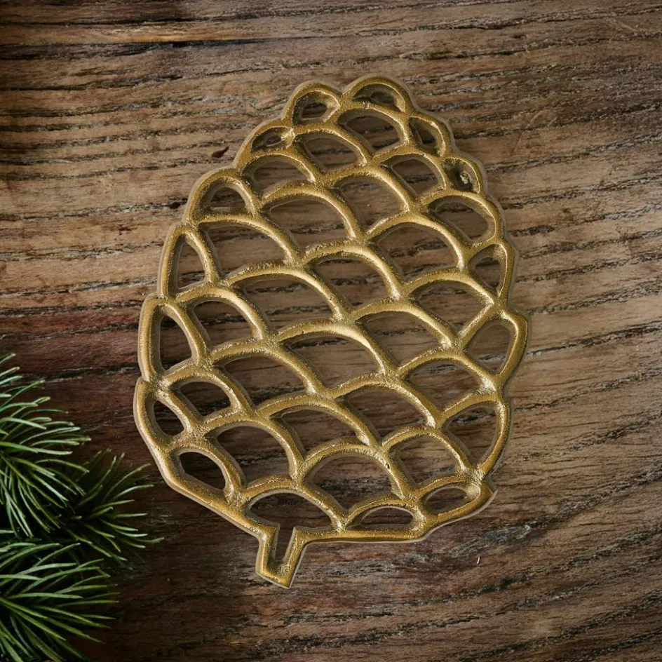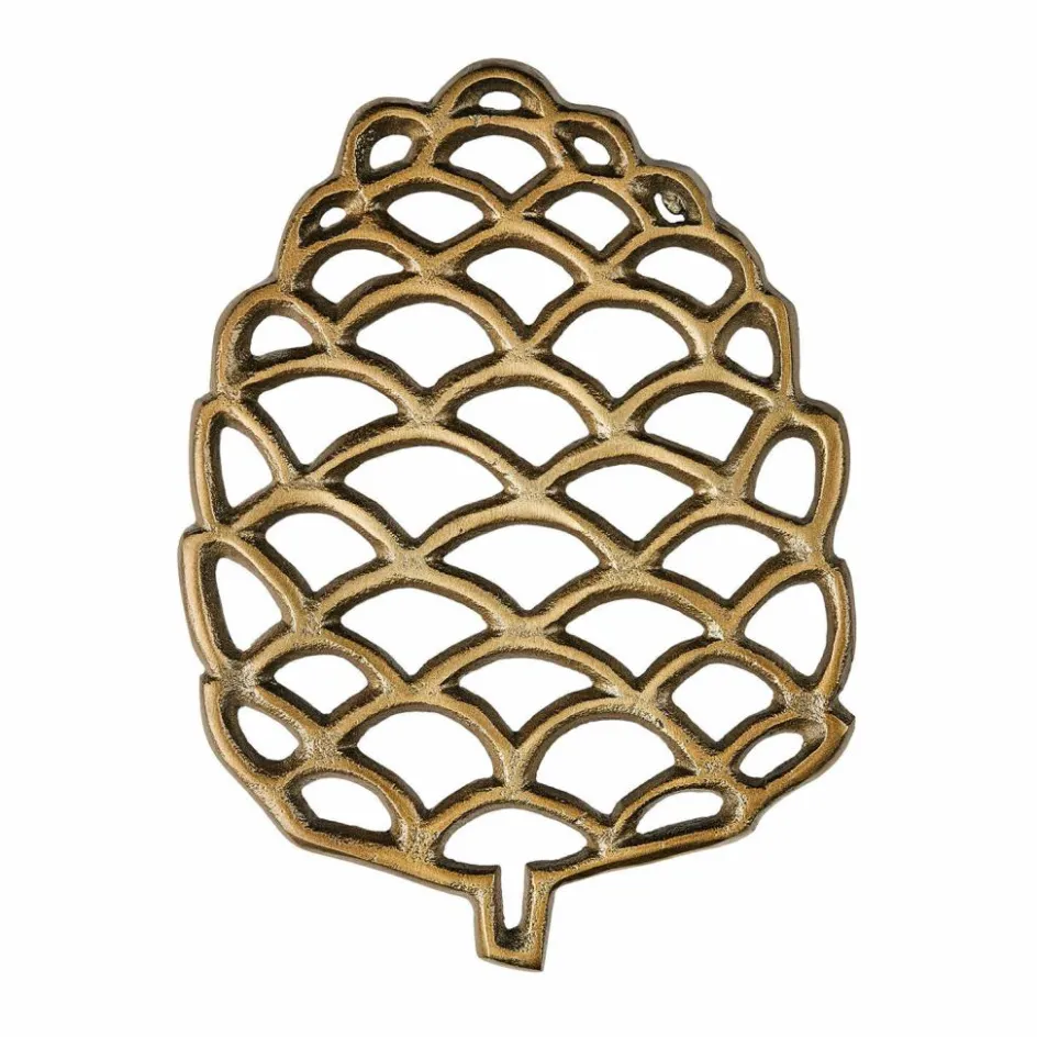 Wie ein Fund aus Omas Winterstube: Der Untersetzer aus Aluguss begeistert mit seinem detailreichen Tannenzapfenmotiv, das die Natur in ihre schönsten Linien übersetzt. Das warme Antikmessing-Finish bringt sanften Glanz ins Spiel und erinnert an das goldene Licht winterlicher Nachmittage. Seine offene Struktur verleiht ihm eine gewisse Leichtigkeit, während das Material zugleich solide und zuverlässig ist – perfekt, um heiße Teekannen oder Auflaufformen stilvoll abzustellen. Ob als stimmungsvolles Detail auf der Festtagstafel oder als charmante Ergänzung auf dem Sideboard – dieser Untersetzer ist mehr als nur praktisch, er erzählt Geschichten von Hüttenabenden und Tannenduft.