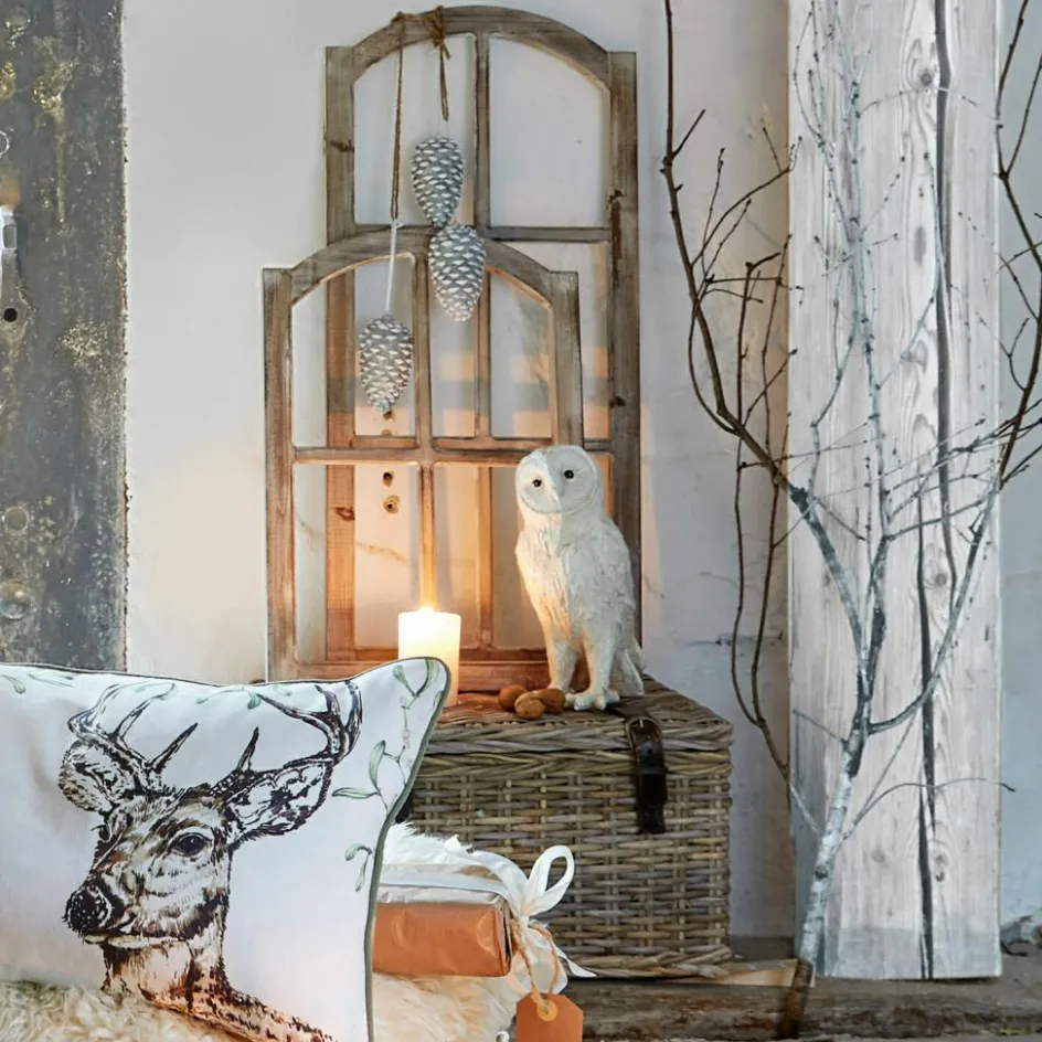 Die wunderhübsche Schneeeule bezaubert mit ihrem freundlichen und naturnahen Charme. Sie ist fein gearbeitet und von Hand bemalt. Von den wachen Augen bis zu den Flügeln erscheint sie wirklich wie ein Bewohner des Waldes. Ihr Anblick erinnert an einen idyllisch verschneiten Winterwald. Die recht große Tierskulptur lässt sich schön dekorieren, vielleicht auch mit Tannenzapfen und grünen Zweigen kombiniert. Holen Sie sich hiermit stilvoll die Natur nach Hause.