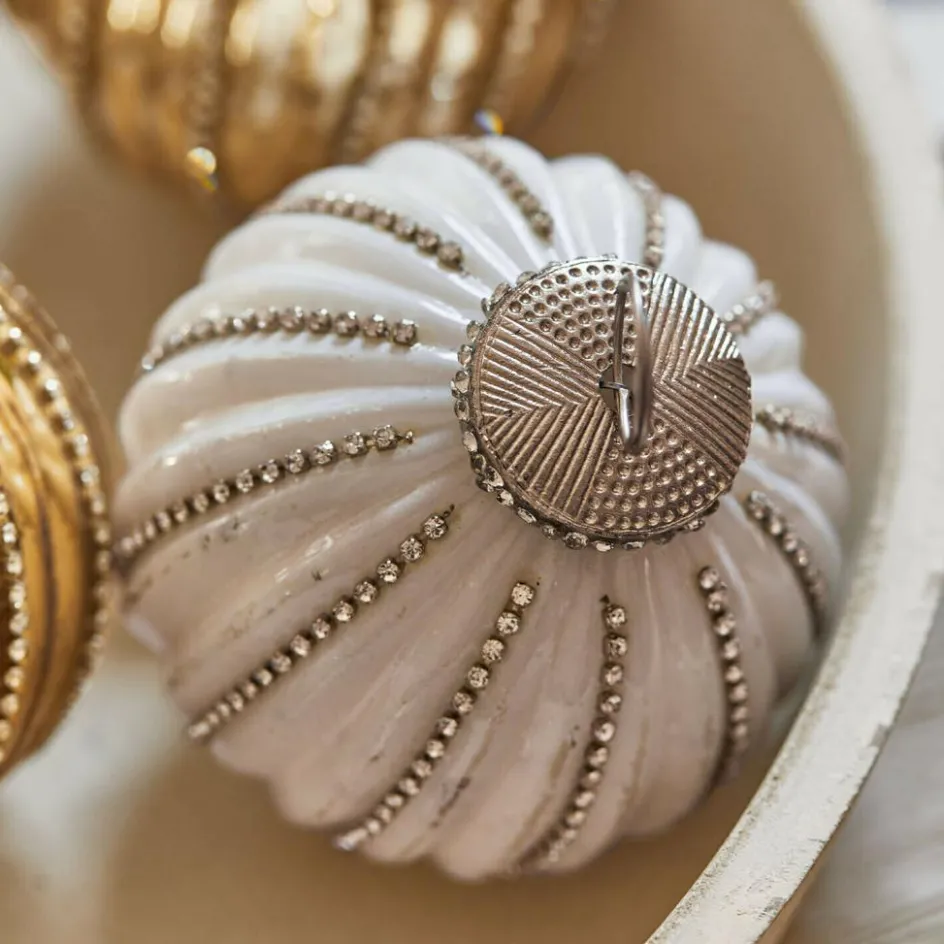 Wenn Weihnachtszauber Gestalt annimmt, dann vielleicht genau so: Sechs prachtvolle Kugeln, die wie kleine Kunstwerke am Baum schimmern. Drei von ihnen tragen ein edles Bauernsilber-Finish in Gold – nostalgisch und gleichzeitig glanzvoll – während die anderen in sanftem Weiß mit Glassteinchen glänzen. Die filigrane Spiralstruktur lässt Licht auf besondere Weise tanzen und verleiht den Kugeln Tiefe und Bewegung. Durch die mundgeblasene Verarbeitung ist jede Kugel ein Unikat mit ganz eigener Aura. Ob am Baum, im Fenster oder als Deko auf dem Tisch – dieses Set bringt ein leises Funkeln in jedes Fest.