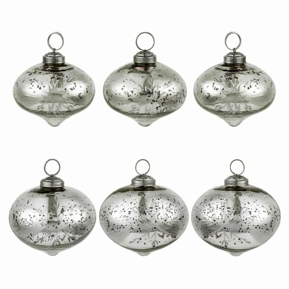 Erschaffen Sie eine zauberhafte Weihnachtsatmosphäre mit diesem edlen Set aus sechs mundgeblasenen Weihnachtskugeln. Jede Kugel erzählt die Geschichte von traditioneller Handwerkskunst, mit fein eingravierten Mustern, die an zarte Eiskristalle erinnern. Das Bauernsilber-Finish reflektiert das Kerzenlicht auf wundervolle Weise und taucht Ihr Zuhause in einen nostalgischen Glanz. Ohne Aufhängeband können Sie die Kugeln ganz nach Ihren Vorstellungen in Szene setzen. Diese einzigartigen Dekorationsstücke verleihen Ihrem Weihnachtsbaum eine luxuriöse und gleichzeitig heimelige Note, die Ihre Festtage unvergesslich machen.