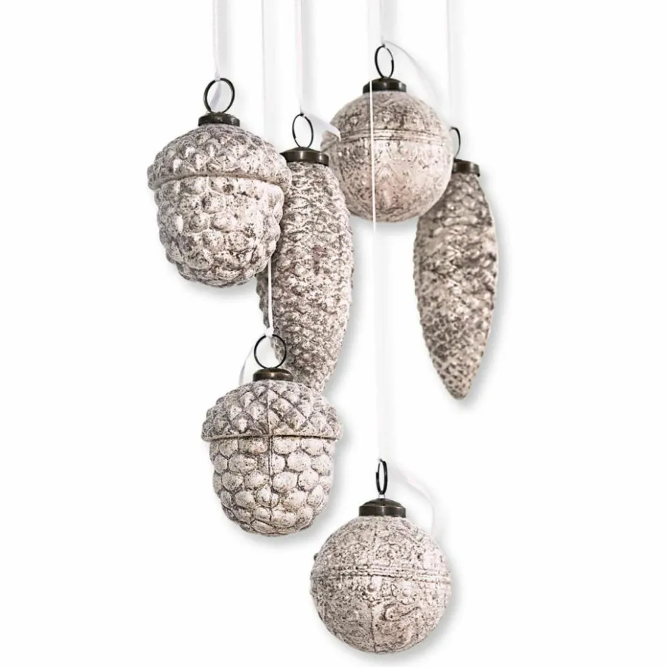 Wie sieht Ihre Weihnachtsdekoration aus? Klassische Glaskugeln? Holzfiguren? Strohsterne? – Sicher haben Sie eine ganze Menge unterschiedlicher Dekorartikel in Ihren Kisten, die Sie zur Weihnachtszeit aus den Regalen im Keller holen und an deren Vielfalt Sie sich zur Adventszeit immer wieder aufs Neue erfreuen. Wenn Sie Abwechslung mögen, werden Sie dieses Weihnachtsschmuck-Set lieben. Hier finden sich verschiedene Formen, die Ihr vorhandenes Sortiment um bezaubernde Objekte bereichern werden: Tannenzapfen, Kiefernzapfen und die klassische Kugelform sind die Vorbilder, die in kunstvoller Ausgestaltung in den Rang wahrer Schmuckstücke erhoben wurden. Zuerst wurden die gläsernen Accessoires mit einem besonderen Finish versehen und dann wurden sie noch dezent mit Baumwolle beflockt, sodass sie eine leicht samtige Oberfläche erhalten. So machen Sie mit diesen Schmuckstücken Weihnachten nicht nur zu einem Fest der Liebe, sondern auch zu einem Fest fürs Auge.