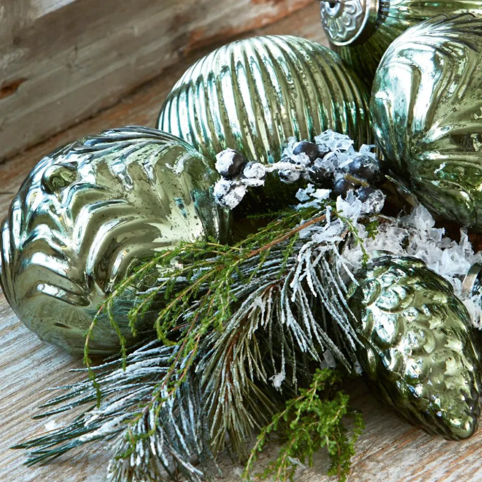 Farbgebung und die besonders hübsch gestalteten Formen machen dieses Set zu einem ganz besonderen Hingucker am Weihnachtsbaum. Der schöne Antik-Ton verbreitet eine sehr besondere Eleganz im Raum. Festliches Ambiente ist mit den mundgeblasenen Schmuckstücken in Kugel- und Zapfenform garantiert. So sind die Accessoires die perfekten Begleiter für die Zeit der vielen Feste und schillernden Dinner-Abende mit prickelndem Champagner und Köstlichkeiten für echte Gourmets. Auch in einer großen Vase oder an winterlichen Zweigen sehen die Prachtexemplare einfach wunderschön aus. Dank der Metallösen können sie spielerisch befestigt werden. Das Design schmeichelt jedem Ambiente, ob heller Landhaus-Stil oder zeitgenössisches Interior. Wer das Exklusive liebt, wird dem Charme dieser Must-Haves für die Weihnachtszeit nicht widerstehen können.