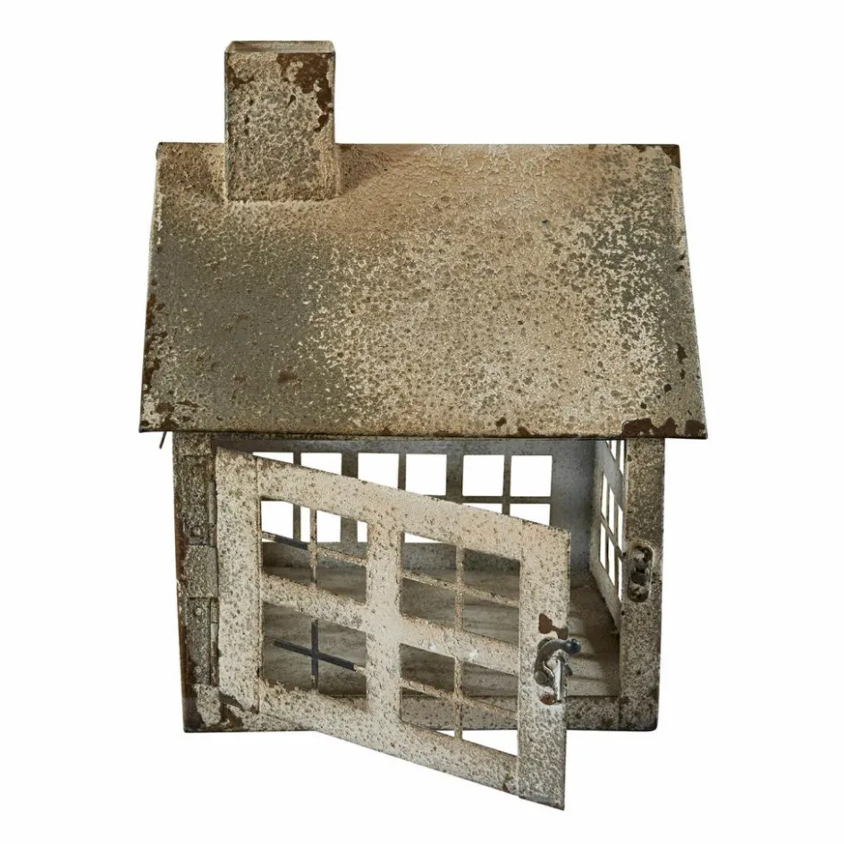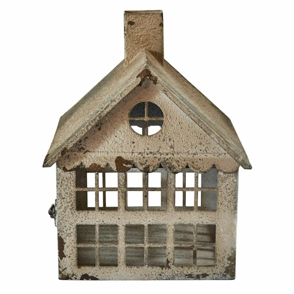 Wie aus einer anderen Zeit wirkt dieses kleine Eisenhaus, dessen Patina von frostigen Winternächten und warmem Kerzenschein erzählt. Die rustikale Oberfläche, mit ihrem gewollt gealterten Finish, unterstreicht den nostalgischen Charakter und erinnert an verschneite Abende im Kerzenlicht. Sobald ein Teelicht im Inneren entzündet wird, erwachen die ausgestanzten Fenster zum Leben: Zarte Lichtstrahlen tanzen über Wände und Möbel, tauchen den Raum in ein wohlig warmes Ambiente. Ob einzeln platziert oder als Teil eines winterlichen Ensembles – dieses Lichterhäuschen erzählt seine ganz eigene Geschichte.